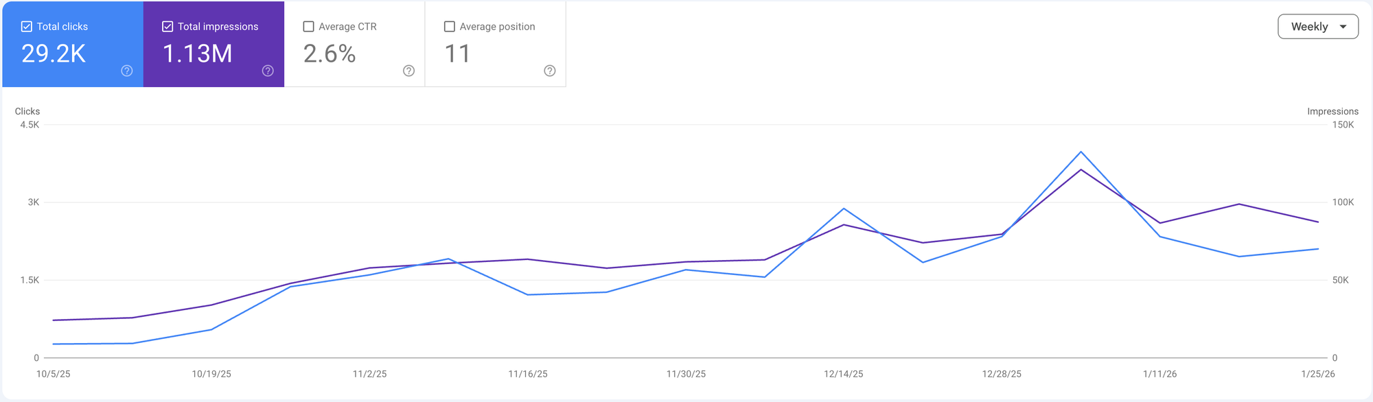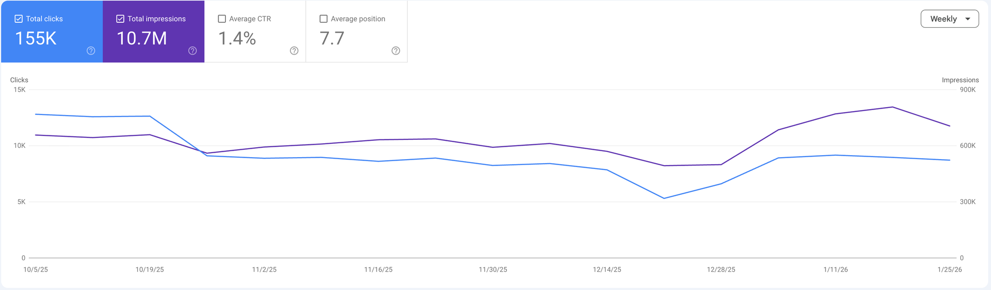 These improvements indicate not just a recovery from the migration, but a structural strengthening of our visibility in Google search, particularly for commercially valuable, high-intent queries.